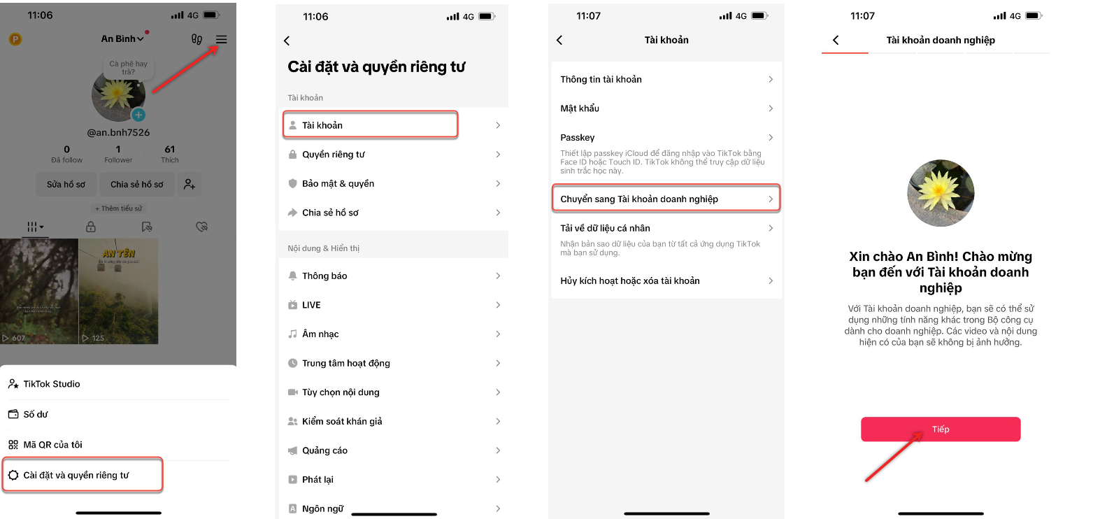 Bước 4: Chọn chuyển sang Tài khoản Doanh nghiệp